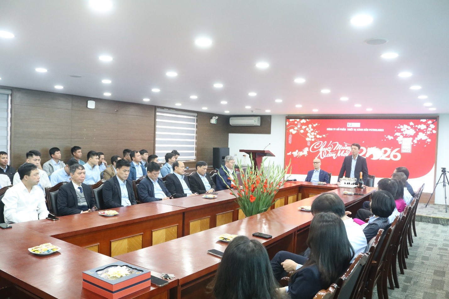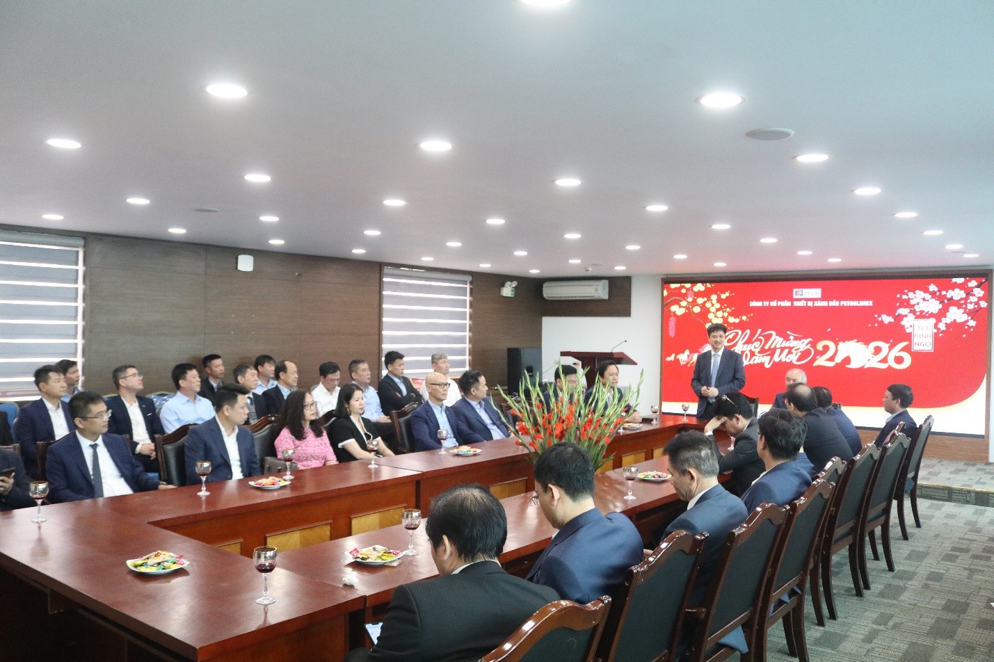 Nhân dịp Năm mới, Công ty vinh dự được đón tiếp Đoàn công tác của Petrolimex về thăm, chúc Tết đầu năm và động viên tập thể cán bộ, người lao động Công ty. Về phía Tập đoàn Xăng dầu Việt Nam có Ông Trần Ngọc Năm – thành viên HĐQT, Phó Tổng Giám đốc; Ông Nguyễn Thanh Sơn – Chủ tịch Công đoàn cùng lãnh đạo các phòng/ban Tập đoàn. Về phía Tổng công ty Xây lắp và Thương mại Petrolimex (PGCC), có Ông Nguyễn Bá Tùng - Bí thư Đảng ủy, Chủ tịch Hội đồng thành viên; Ông Nguyễn Đình Thanh – Tổng giám đốc; Lãnh đạo TCTY và các phòng/ban cùng lãnh đạo công ty thành viên PGCC. Sự quan tâm, chỉ đạo và những lời chúc đầu năm của Lãnh đạo Tập đoàn và Tổng công ty là nguồn động viên to lớn, tiếp thêm niềm tin và động lực để tập thể Công ty phát huy tinh thần đoàn kết, quyết tâm hoàn thành tốt nhiệm vụ năm 2026.
